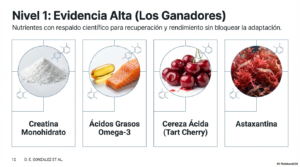 Si la suplementación dietética es genuinamente necesaria para suplir deficiencias o para afrontar periodos de entrenamiento extremo o múltiples competiciones seguidas, existen compuestos respaldados por la literatura científica. La evidencia de calidad moderada a alta respalda principalmente a cuatro suplementos que destacan por sus beneficios sin interferir con las adaptaciones físicas.