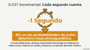 Incluso, cada segundo que logres restarle a tu tiempo en esta prueba reduce las probabilidades de sufrir deterioro musculoesquelético.