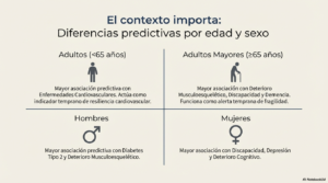 - En adultos mayores: la falta de fuerza predice de manera más precisa el deterioro cognitivo, la demencia, la discapacidad y los problemas musculoesqueléticos.