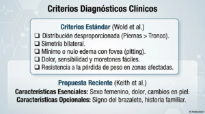 El diagnóstico es clínico. No se hace con la balanza. No se define por el IMC. No se confirma con una dieta restrictiva que “funcione o no funcione”. Se basa en el patrón de distribución, la simetría, el dolor y la historia de mala respuesta a tratamientos convencionales.